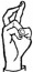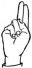 На ћирилици написано ПЕТРА ШЋЕЛОВИЋ састоји се из 13 слова [?]. Исписано ћириличном једноручном азбуком за глувонеме: