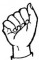 На ћирилици написано ПЕТРА ШЋЕЛОВИЋ састоји се из 13 слова [?]. Исписано ћириличном једноручном азбуком за глувонеме: